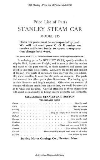 1920 Stanley   Price List of Parts   Model 735 (28pgs)